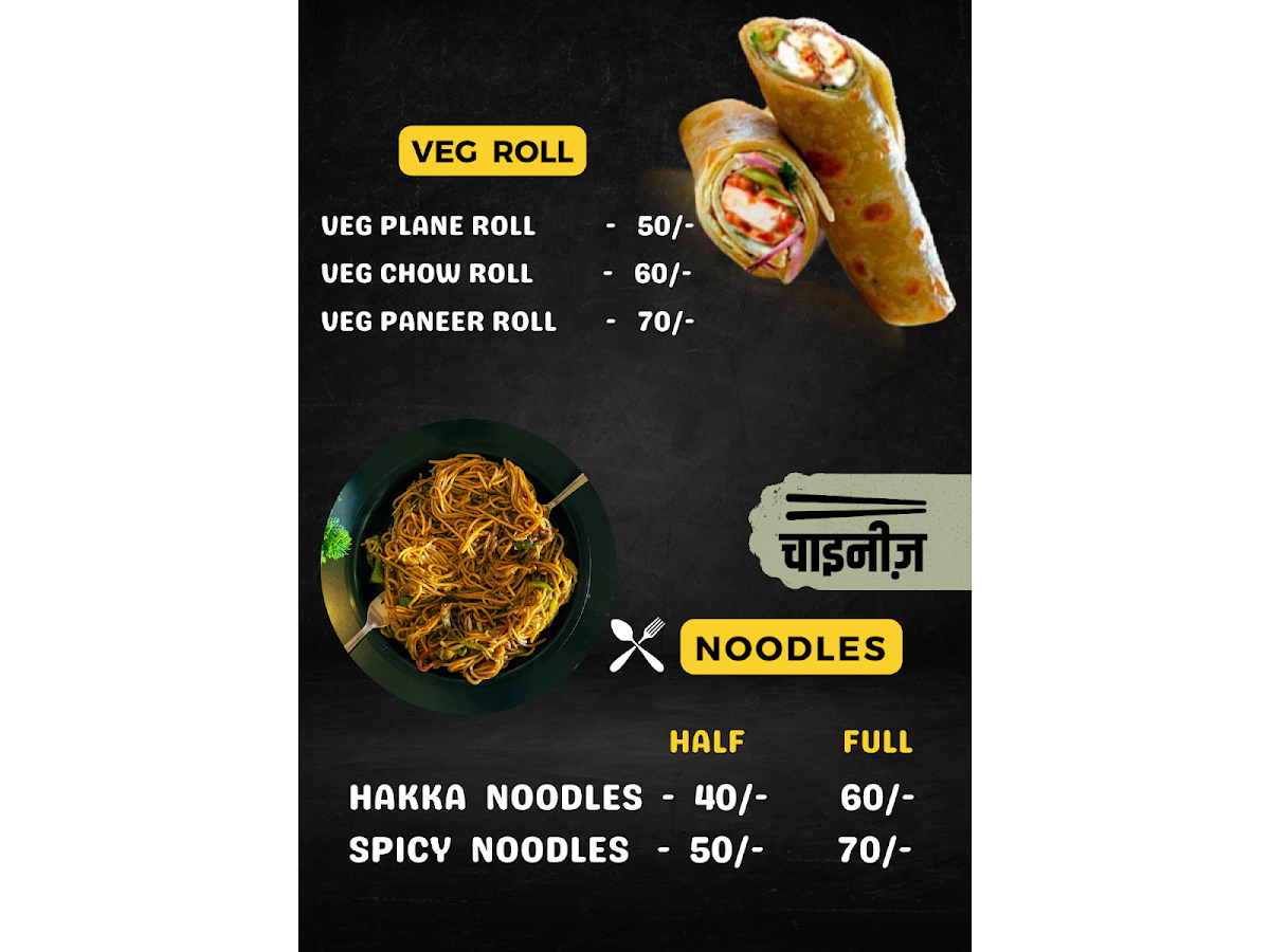 - Veg Rolls: Choose from delicious options like Veg Plane Roll, Veg Chow Roll, and Veg Paneer Roll.